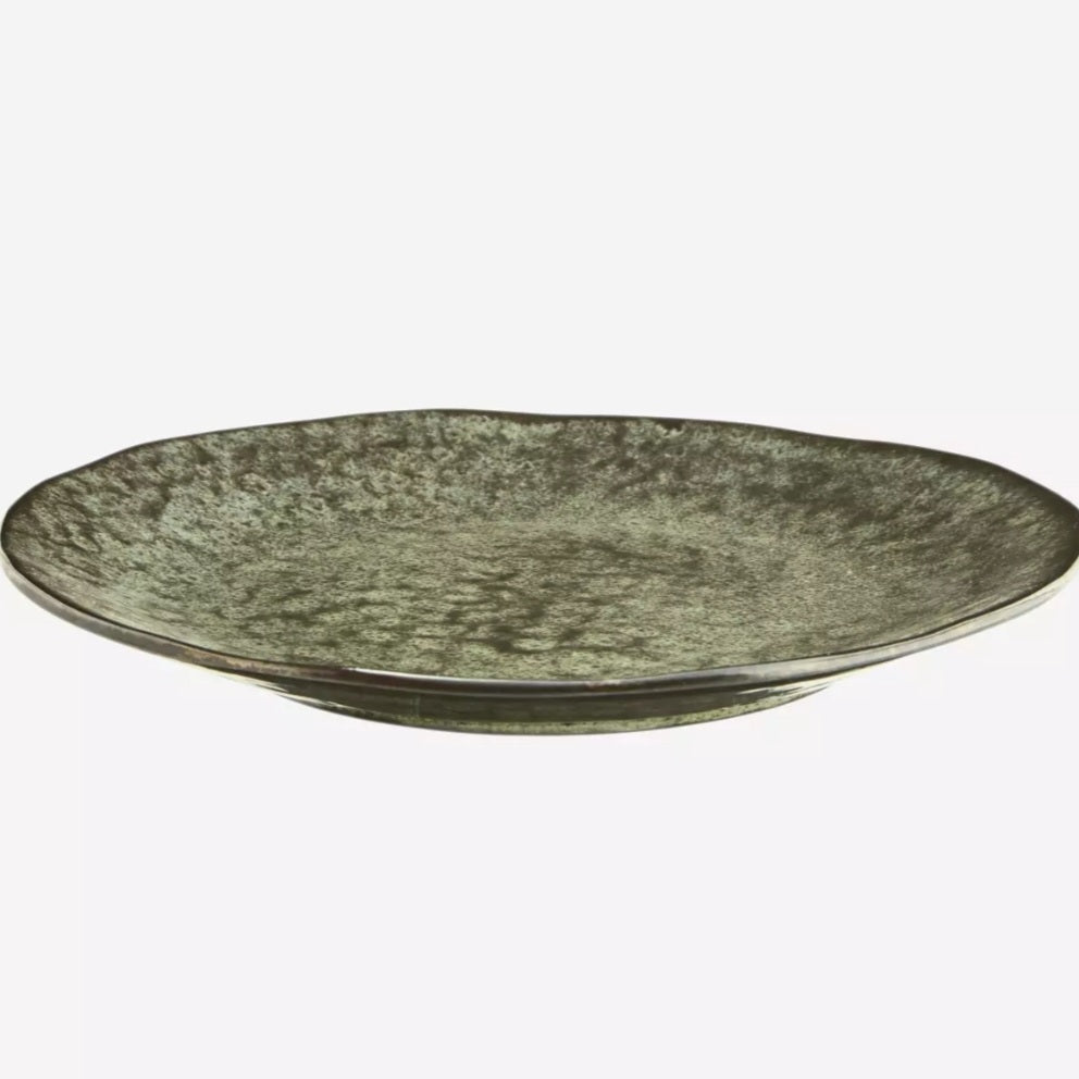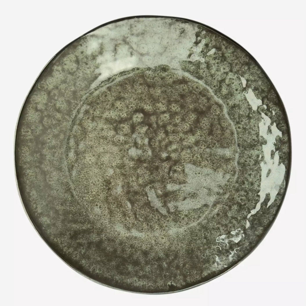 Tallrik Middag Stengods grön/svart